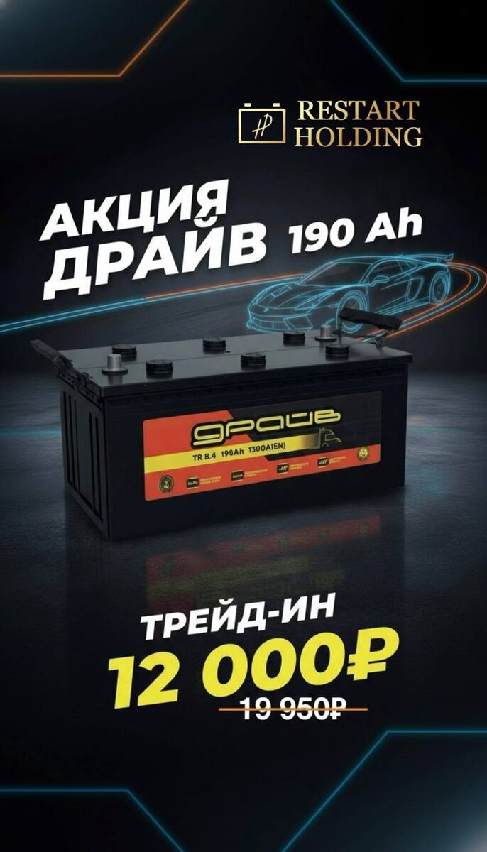АКБ ДРАЙВ 190 Ah всего 12 000 по trade-in!