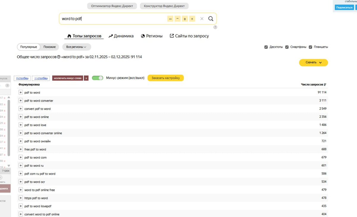 В зависимости от направленности, такие сервисы могут помочь бизнесу заработать и поэтому популярны: например, по данным Водстата, по теме конвертации форматов ежемесячно только по одному ключу частотность – более 90 тысяч запросов: