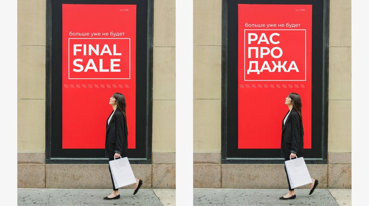 Например, если на баннере большими буквами написано FINAL SALE, то теперь не получится просто сделать сноску мелким шрифтом с переводом «распродажа». Необходимо перевести либо написать оба варианта в одинаковом дизайне и размере.