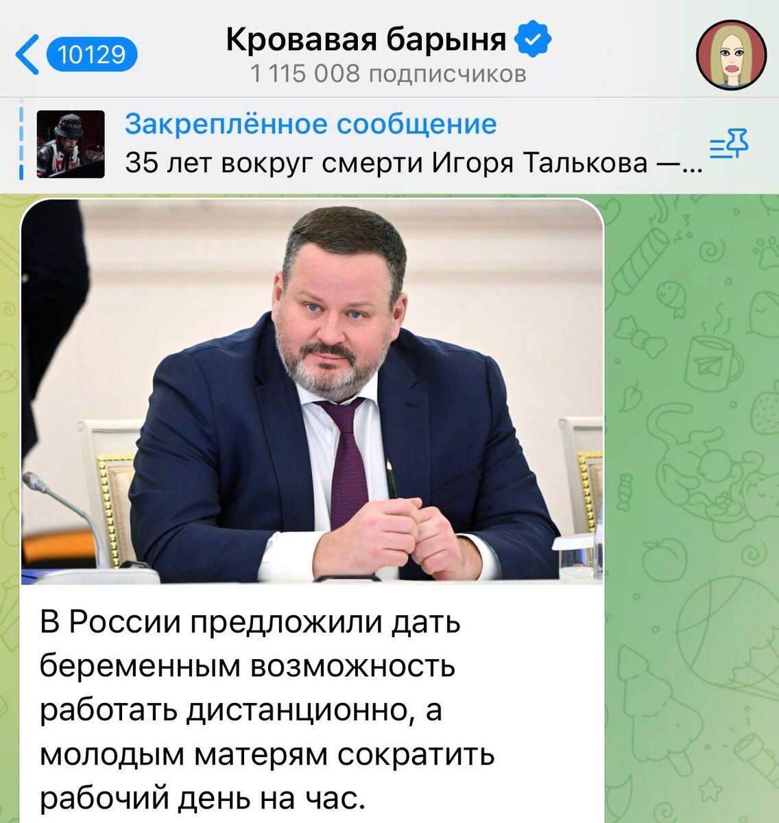 Не получится девушек запереть дома для того, чтобы они только рожали. Они не должны стоять перед выбором: или я себя реализую в профессии, или я рожаю. Чтобы была возможность продлить время пребывания в детском саду, чтобы можно было с работы в порядке вещей уйти пораньше, отпроситься на детский утренник, отправить ребёнка в лагерь и так далее. С одной стороны я понимаю, для чего чиновники стали заботиться о работающих матерях. И зачем в принципе вся эта движуха вокруг беременных и только что родивших. С другой стороны прекрасная инициатива, когда мама со спокойной душой уходит на утренник или оставляет ребенка в детской комнате (ибо с садами проблема). Если это все не выльется в обязаловку, чтобы все мамы выходили на работу, то очень даже неплохо звучит. Посмотрим, что дальше. Что думаете?