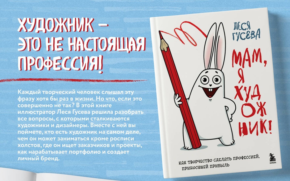 Огненная книга Леси Гусевой «Мам, я художник!» - настоящий глоток свежего воздуха для творческих людей! Пока нахожусь в процессе чтения, но уже могу сказать: автор не просто делится теоретическими знаниями, а ведёт живой, доверительный диалог с читателем, опираясь на собственный 11‑летний опыт работы иллюстратором с крупными компаниями. Особенно ценно, что Гусева затрагивает не только практические аспекты профессии (поиск заказчиков, составление портфолио, ценообразование), но и говорит о важных психологических моментах — выгорании при поиске своего пути. Определённо рекомендую всем, кто хочет превратить творчество в профессию! В аудио есть на ЛитРес и Яндекс Книги: https://www.litres.ru/audiobook/lesya-guseva/mam-ya-hudozhnik-kak-tvorchestvo-sdelat-professiey-prinosyasc-71431927/ Литрес Присоединяйтесь к группе в Телеграмм: t.me/dariajustart