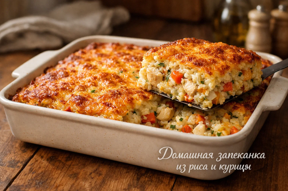 Запеканка из риса с курицей и овощами — это не «бедная еда из остатков», как думают некоторые. Это полноценное, сытное, вкусное блюдо, которое легко превращается в любимый домашний обед. Причём каждый раз оно может быть немного другим — в зависимости от того, что есть под рукой.
