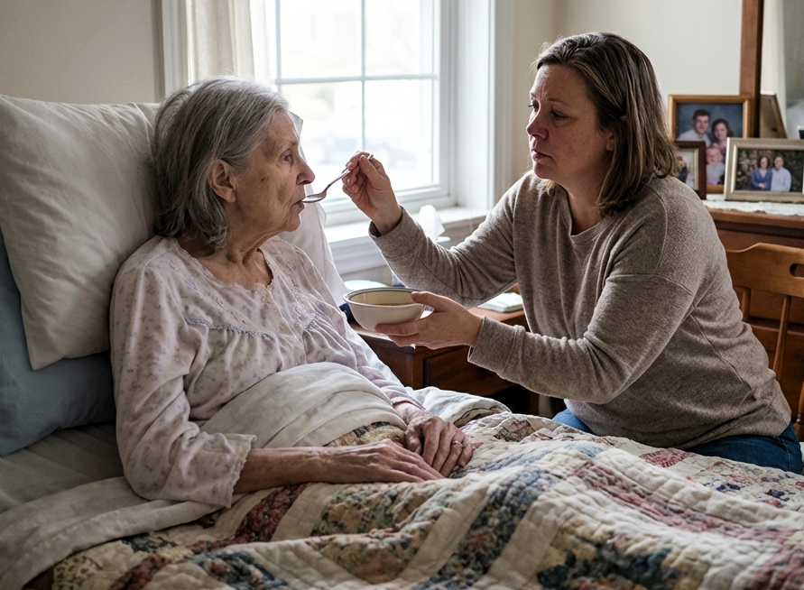 Однажды, уже спустя два года, Ольга, измождённая бессонной ночью, сорвалась. Она плакала, убирая разбросанную по кухне кашу. Нина Степановна сидела в кресле и смотрела на неё пустым взглядом. Вдруг её рука, иссохшая и холодная, потянулась и легла на голову Ольги. Она не гладила, просто положила, как кладут руку на голову щенку.