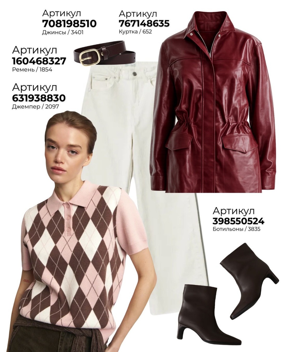 Эта подборка хороша тем, что вещи легко смешиваются между собой: молочные джинсы можно носить с шоколадным свитшотом, тёмную кожаную куртку — с бордовой гаммой, а бежевые брюки — с любым светлым верхом. Главный секрет здесь — благородная палитра и грамотные пропорции: подчеркнули талию ремнём, добавили правильную длину брюк, завершили обувью без лишнего шума — и получились образы, которые выглядят уверенно, современно и очень аккуратно.