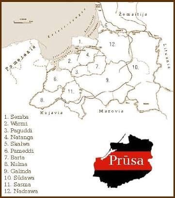 Символы балтийской Пруссии и Куршской косы и карта прусских земель на прусском языке