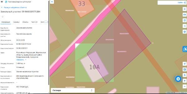 Название: Земельный участок с кадастровым номером 51:19:0030177:294 площадь 1404 по адресу Российская Федерация, Мурманская область
