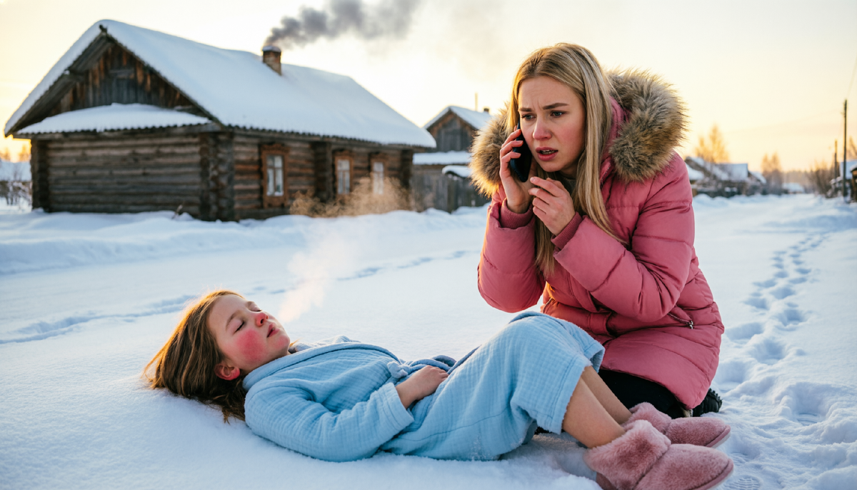 Она опустилась на колени рядом с ребёнком. Это была девочка лет семи. Её лицо было бледным, почти прозрачным, губы синели от холода. На ней был лишь тонкий хлопковый халатик и домашние тапочки, мокрые до нитки. Руки были вытянуты вдоль тела, пальцы слегка подрагивали.