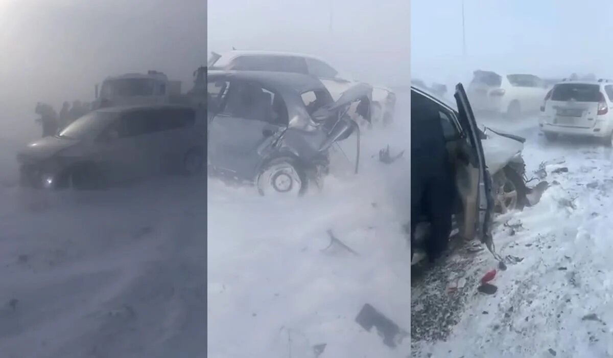 Десять автомобилей столкнулись на трассе в Актюбинской области (ВИДЕО)