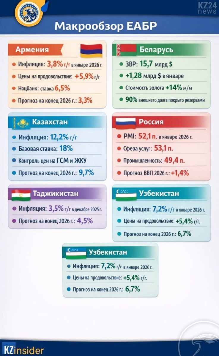 Экономическая картина СНГ в цифрах — инфляция, ставки и прогнозы на 2026 год по материалам ЕАБР (https://t.me/eabr_bank/1164)