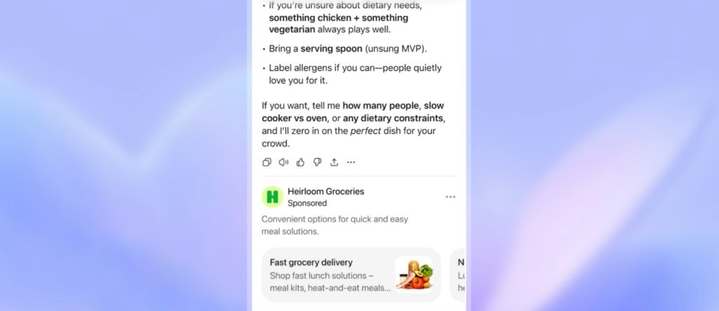 OpenAI приступила к тестированию новой функции в ChatGPT, которая может изменить восприятие платформы некоторыми пользователями. Компания подтвердила, что началось ограниченное внедрение, и ожидается, что первые отзывы будут способствовать дальнейшему расширению и доработкам. OpenAI начинает тестирование рекламы в ChatGPT с соблюдением мер по обеспечению… 📖 Полный материал @appsetter | Подписаться 👆