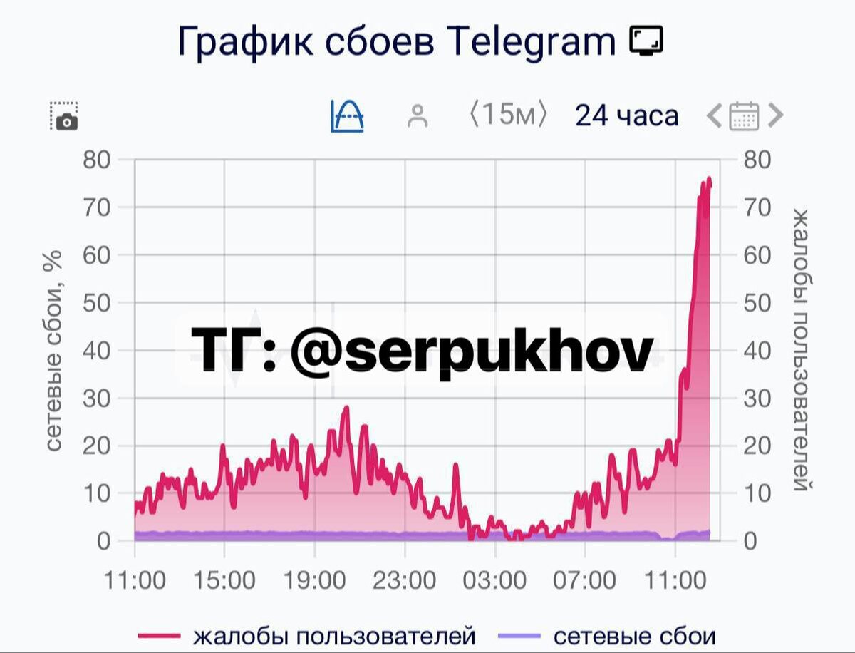 Пользователи из разных регионов страны сообщают о проблемах в работе Telegram. У многих не загружаются фото и видео, сообщения отправляются с задержкой или не уходят вовсе. Причины сбоя пока не называются. Жалобы продолжают поступать. Как у вас? 🤯 — есть сбои 👍🏻 — все прекрасно ❤️ — телега живи @serpukhov