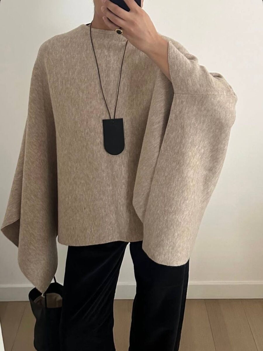 Еще один аналог привычного джемпера — трикотажные пончо.