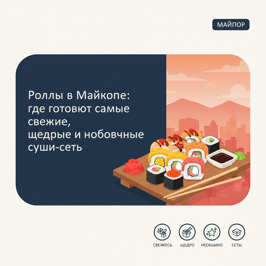 Признаюсь, я долго обходил суши-бары в Майкопе стороной. Думал, зачем тут японская кухня, когда вокруг столько своего, кавказского? Но один дождливый вечер всё изменил. Друзья заказали сет из одного неприметного места — и это был взрыв вкуса. С тех пор я начал свое маленькое гастрономическое расследование. И вот что выяснил. 1. Флагман доставки: «Якитория» и «Сушия»