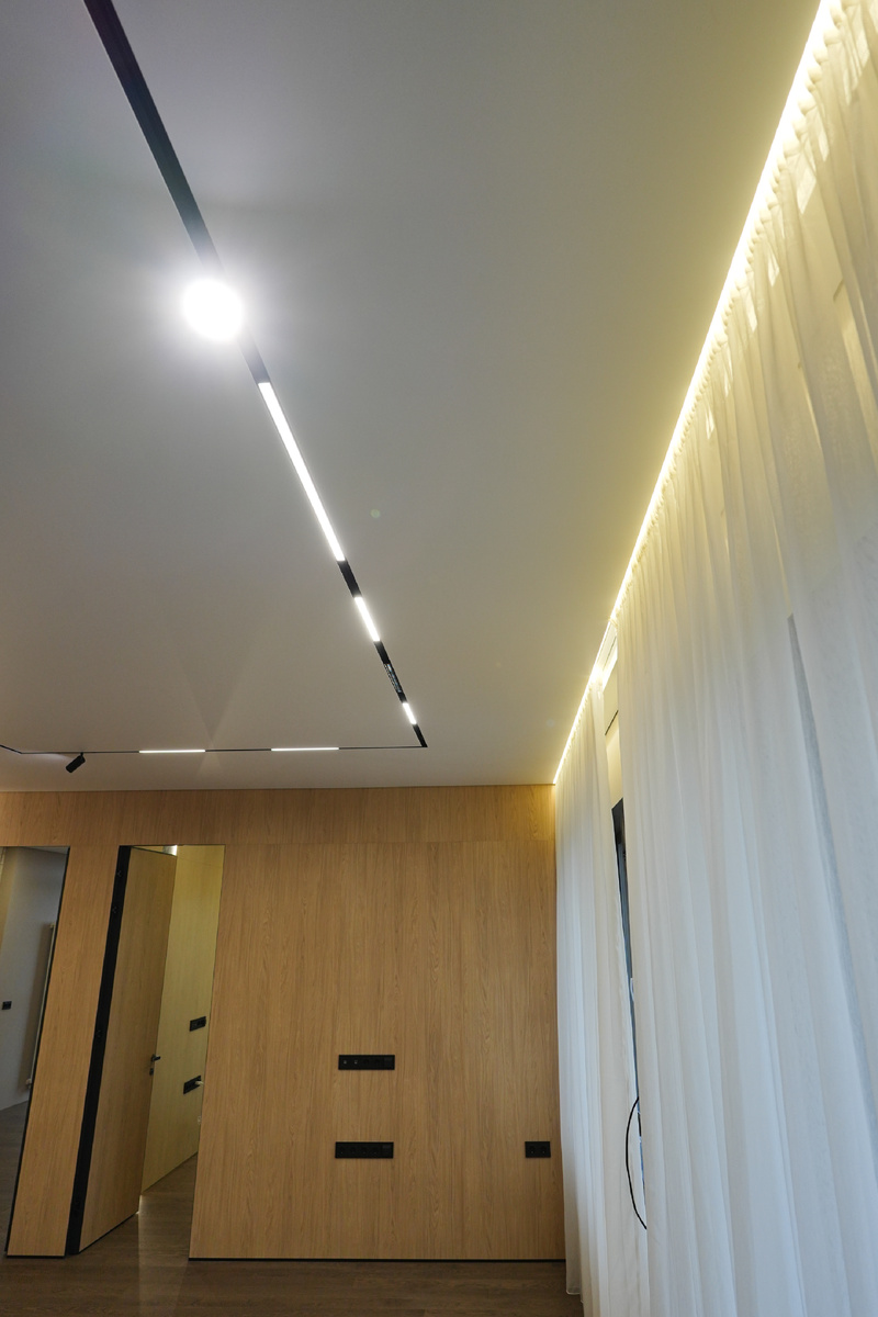 · Спальня: Мягкая подсветка по периметру вместо основной люстры — мечта для отдыха.