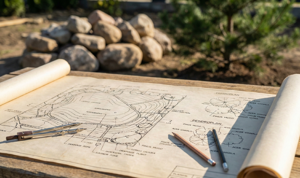 Вопрос «Зачем платить за бумагу, если можно сразу копать?» возникает у многих владельцев загородной недвижимости. Однако статистика неумолима: исправление ошибок при хаотичном благоустройстве обходится в 2-3 раза дороже, чем стоимость качественного проектирования. Ландшафтный проект – это, прежде всего, инженерная инструкция, страхующая от финансовых потерь. Самая частая проблема самостроя – вода. Без грамотного проекта вертикальной планировки и схемы дренажа талые и ливневые воды могут подтапливать фундамент дома, скапливаться на дорожках или заболачивать газон. Инженер на стадии проекта рассчитывает уклоны с точностью до сантиметра, проектирует систему ливневой канализации и дренажа так, чтобы участок высыхал спустя 15–20 минут после дождя. Переделывать эти коммуникации под уже уложенной брусчаткой – колоссальные затраты. Без сводного плана сетей часто возникают ситуации, когда дерево высаживается над газовой трубой или под линией электропередач. Через 5–7 лет мощная корневая система
