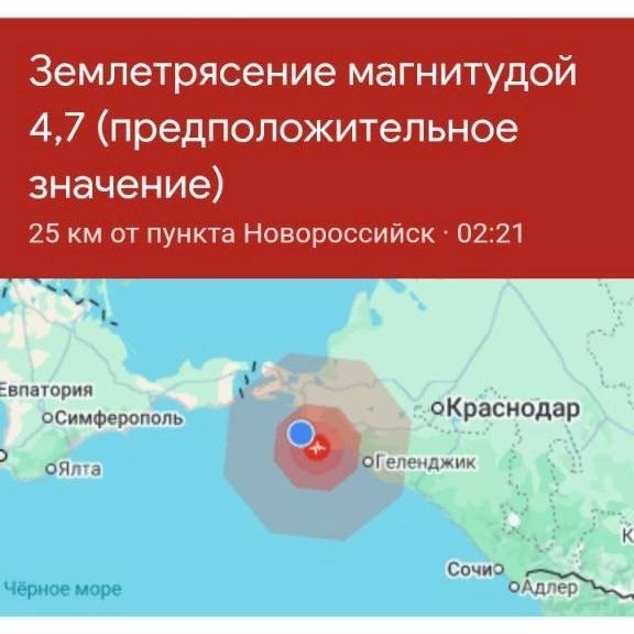 По информации Анапской сейсмической станции землетрясение произошло в 33 км. от Анапы на глубине 10 км. магнитудой в районе эпицентра 4.7 балла. Повреждений городской инфраструктуры не зафиксировано, все системы и объекты жизнеобеспечения функционируют в штатном режиме, сообщают в мэрии Анапы. Кто из проживающих в Витязево ещё почувствовали подземные толчки?Лично Я ,спала . У соседей звенела посуда . 👉ВИТЯЗЕВО Вконтакте 👉Чат ВИТЯЗЕВО в Тг Витязево 👉Канал Витязево в Тг 👉ДЖЕМЕТЕ ВК Предложить Новость @VPredlojka_bot