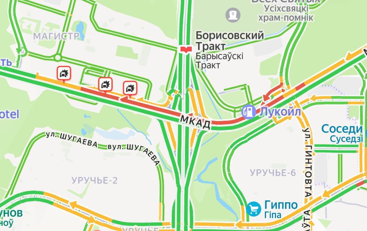 Независимости в направлении ул. Франциска Скорины ГАИ просит участников дорожного движения учитывать эту информацию при выборе маршрута. 🔴 Читайте Sputnik Беларусь в MAX