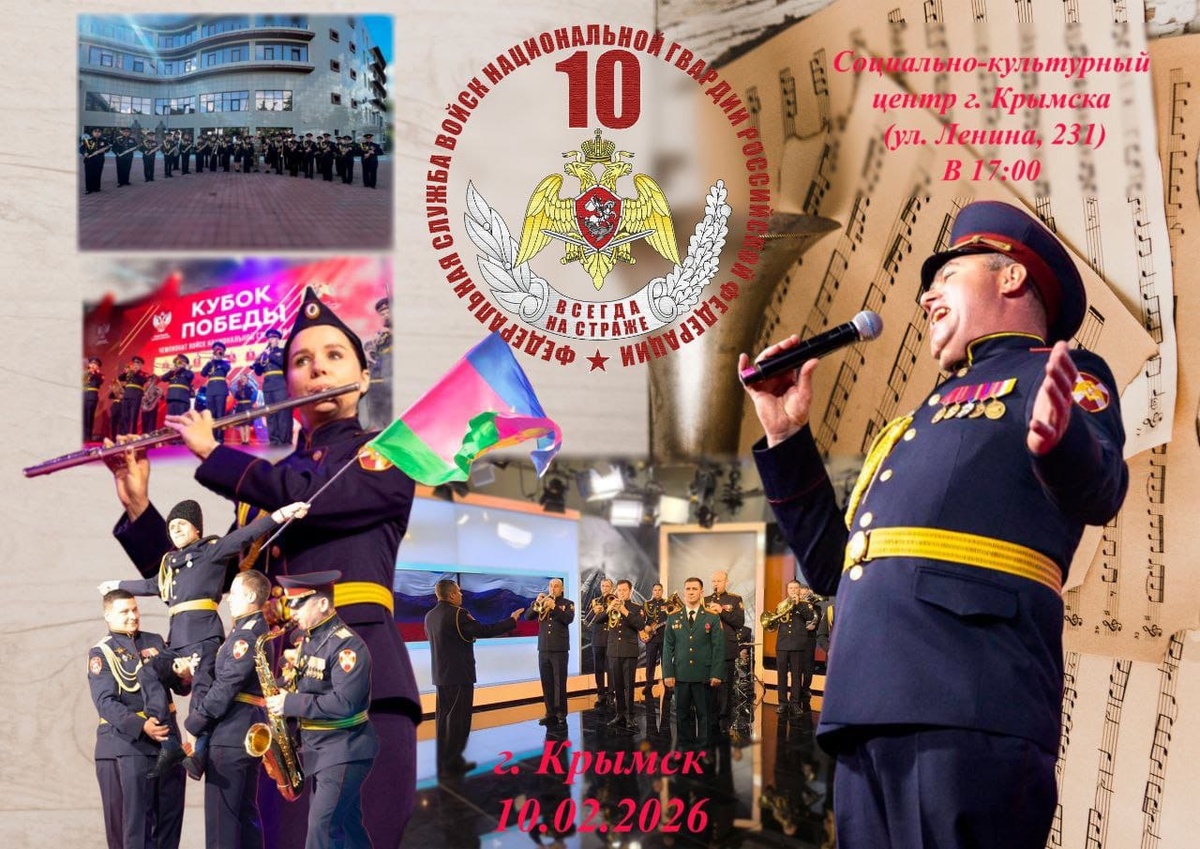 Сегодня, в СКЦ Крымского района состоится концерт военного оркестра регионального управления Росгвардии, приуроченный к 10-летию ведомства и 215-й годовщине войск правопорядка. Под руководством дирижера майора Евгения Сонина коллектив военных музыкантов подготовили специальную концертную программу, в которую вошли военно-патриотические и эстрадные композиции. Адрес: г. Крымск, ул. Ленина, 231 (СКЦ). Начало в 17:00. Вход свободный. 📲 Подписывайтесь на наш канал в МАХ