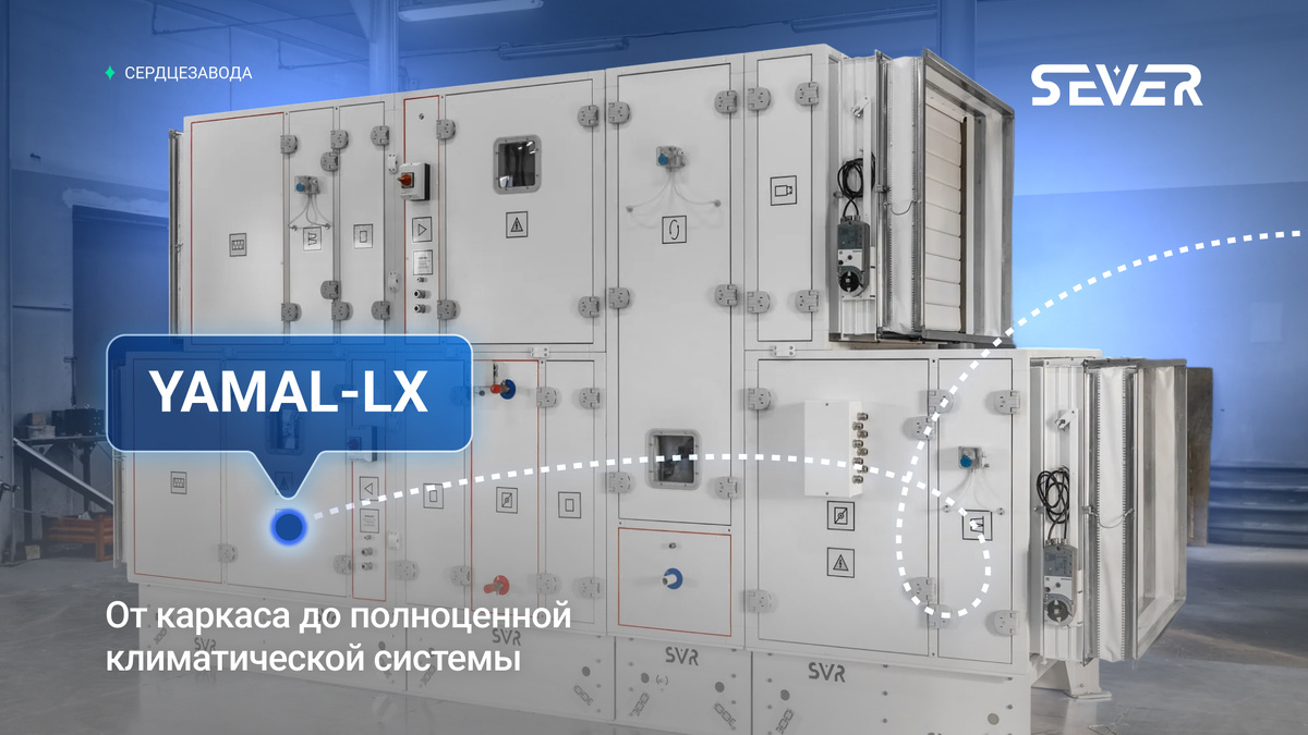 Представьте, вы оформили заказ на заводе SEVER — для вас процесс завершён. А вот для кондиционера его путь на производстве только начинается. Рассмотрим на примере кондиционера Yamal LX со встроенной автоматикой: — Склады Бронируем комплектующие: рабочее колесо вентилятора, электродвигатель, теплообменники, элементы КИПиА и др. — Участок заготовки Рубка и гибка металла. Изготавливаем элементы каркаса и внутренние детали: рамы, кронштейны, перегородки, направляющие, кинематику для клапанов. — Участок резки профиля Режем алюминиевый S- и Т-образный профиль для элементов каркаса и поворотных створок клапанов. — Токарный участок Изготавливаем оси вращения створок клапана. — Участок полимерно-порошкового окрашивания Окрашиваем стойки, ригели, опорные рамы, направляющие и другие элементы каркаса. Когда все комплектующие готовы, то формируем заказ-наряды и переходим к сборке. — Участок сборки Собираем каркас с негорючей теплошумоизоляцией и уплотнителями. Монтируем вентагрегат, шумоглушители,