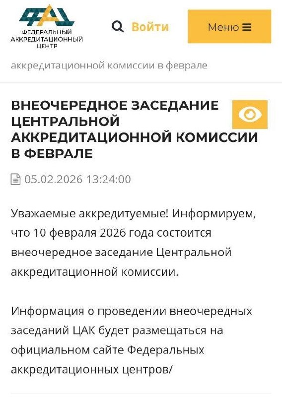 Сегодня состоится внеочередное заседание Центральной аккредитационной комиссии. Следим за официальными итогами и обновлениями. А для тех, у кого периодическая аккредитация предстоит , напоминаем: у нас можно бесплатно получить Гайд по аккредитации 2026. Пишите «Гайд» в Telegram: @Medobuchenie_RF_chat.
