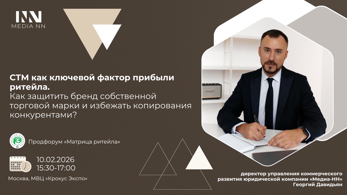 В рамках выставки «Продэкспо-2026» состоится выступление Георгия Давидьяна — директора управления коммерческого развития юридической компании «Медиа-НН», посвящённое одной из самых актуальных тем для современного ритейла — развитию и защите собственных торговых марок (СТМ).