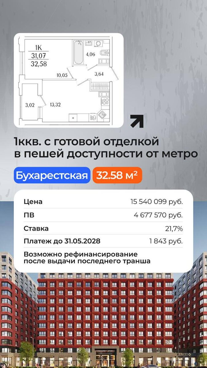 ! • ПВ 30% • Базовая ставка «Не зарплатный клиент» — от 22,7 % • Базовая ставка «Зарплатный клиент» — от 21,7 % • Первый транш 100 000 рублей от общей суммы кредита • Второй транш, остаток суммы кредита за вычетом суммы первого транша (100 000 рублей), за месяц до ввода объекта в эксплуатацию. 🟠 1 транш в день подписания кредитного договора 🟠 2 транш за месяц до ввода объекта в эксплуатацию Итоговые платежи на время строительства — до 1900 рублей.