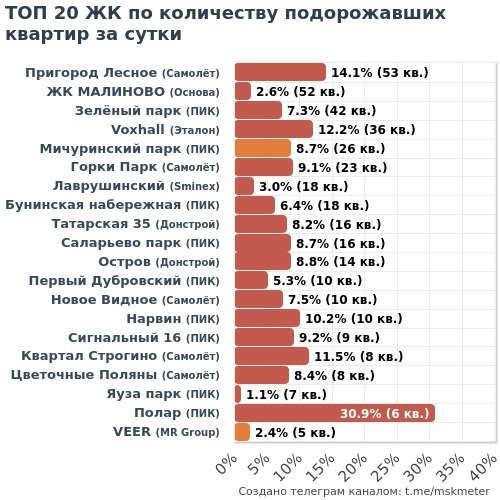 ) 🏆 ЛИДЕРЫ ПО РОСТУ: ПИК 22 ЖК 186кв +8,8% Самолёт 21 ЖК 122кв +11,4% MR Group 6 ЖК 21кв +5,1% 1 ДСК 5 ЖК 8кв +2,8% Основа 4 ЖК 55кв +14,0% Брусника 3 ЖК 8кв +6,8% Эталон 3 ЖК 47кв +5,3% Донстрой 2 ЖК 30кв +8,5% Аквилон 2 ЖК 2кв +3,2% Гранель 2 ЖК 2кв +5,1% 👇 Полная статистика: 📲 В Telegram — быстро посмотреть 🌐 На MskMeter.ru — графики цен и скидки за любой период