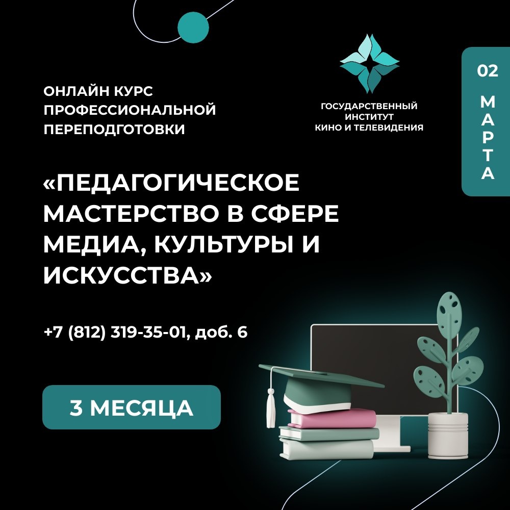 переподготовки Программа научит слушателей: ✅профессионально преподавать в сфере медиа, культуры и искусства; ✅разрабатывать и реализовывать образовательные программы; ✅работать с аудиторией с учетом знаний психологии ребенка и базовых знаний педагогики; ✅проектировать и вести образовательные и культурно-просветительские проекты. 📚Как проходит обучение? Занятия проходят 2–3 раза в неделю в течение трёх месяцев в онлайн-формате. 📆 Когда подать документы? Вас ждут на факультете дополнительного образования ГИКИТ до 20 февраля включительно. ⚪Начало занятий — 2 марта. ✍️ Подать заявку можно здесь Подписывайтесь на наши соцсети, чтобы быть в курсе всех обновлений: MAX 👻 | VK 📲