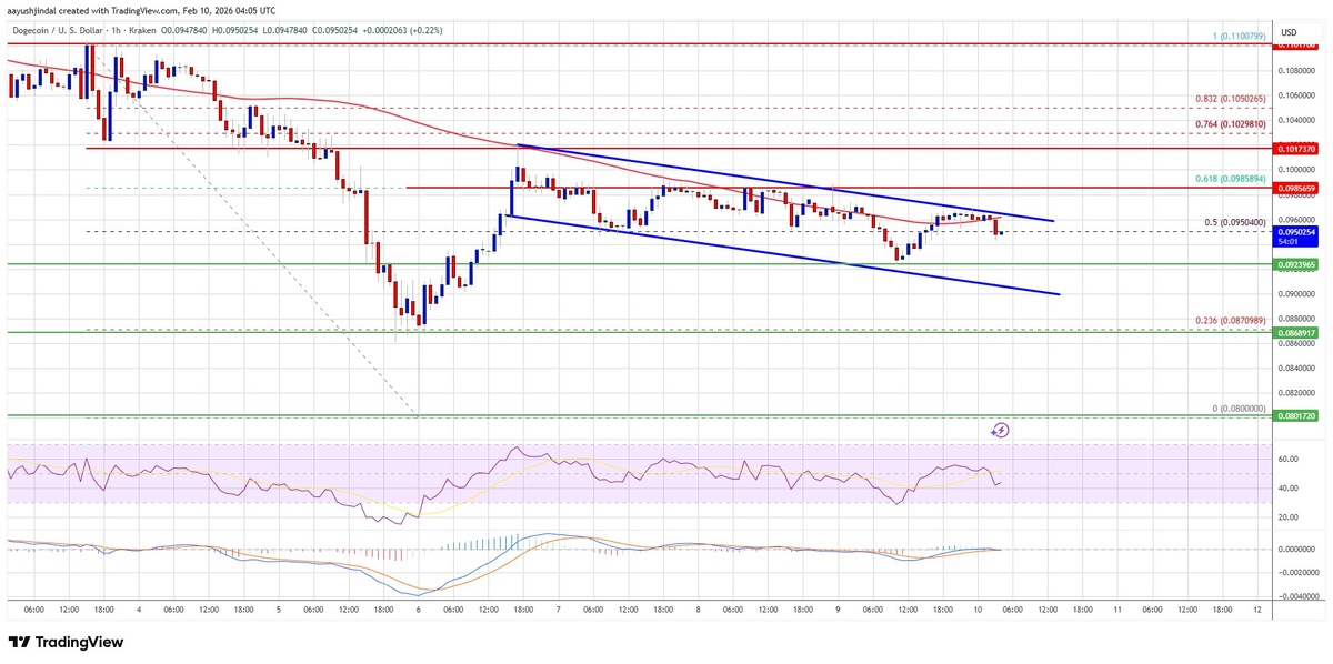 Dogecoin ΡΡΠΎΠ»ΠΊΠ½ΡΠ»ΡΡ Ρ ΡΠΎΠΏΡΠΎΡΠΈΠ²Π»Π΅Π½ΠΈΠ΅ΠΌ Π² ΡΠ°ΠΉΠΎΠ½Π΅ $0.10 ΠΏΠΎΡΠ»Π΅ Π½Π΅Π±ΠΎΠ»ΡΡΠΎΠ³ΠΎ Π²ΠΎΡΡΡΠ°Π½ΠΎΠ²Π»Π΅Π½ΠΈΡ, ΡΡΠΎ ΡΠΊΠ°Π·ΡΠ²Π°Π΅Ρ Π½Π° ΡΠΎΡ