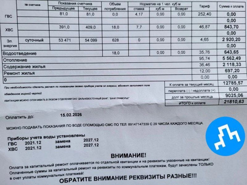 ➤ ПОДРОБНОСТИ... Жители Хабаровского края получили счета за коммунальные услуги с новыми тарифами, где суммы за отопление и свет достигли 9–10 тысяч рублей, вызвав волну возмущения ➡️ Подписаться - @KHV_NEWS