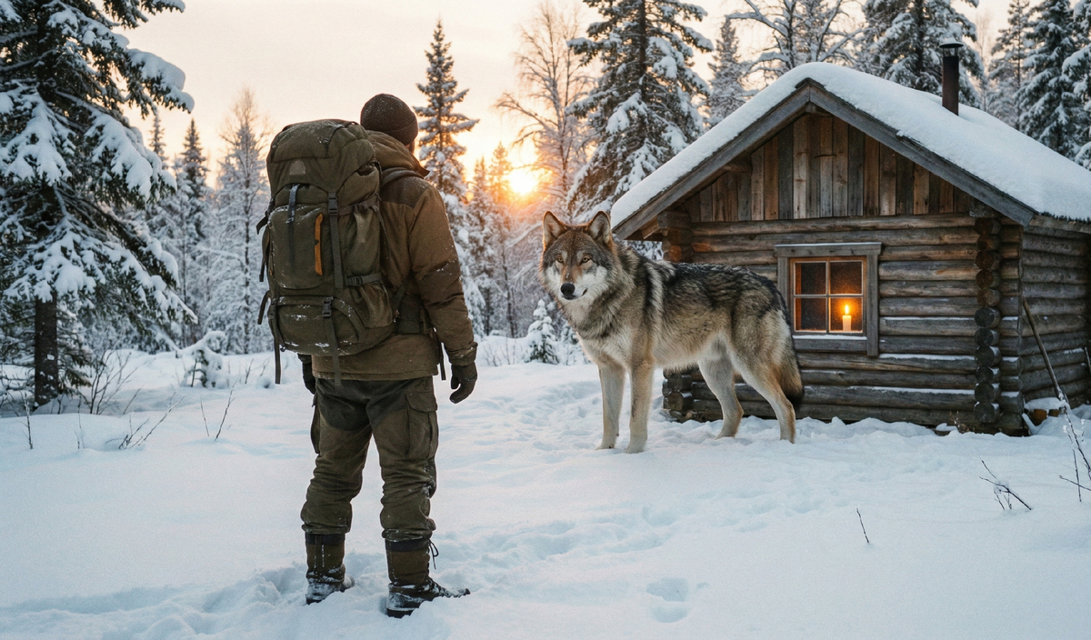 К вечеру небо затянуло плотной пеленой, и начал накрапывать мелкий, колючий снег. Алексей понимал, что нужно искать место для ночлега, но внутренний компас, то самое необъяснимое чувство, которое вело его все эти дни, тянуло вперед. Он шел, уже почти не чувствуя ног, доверившись интуиции. И когда сумерки начали сгущаться, превращая лес в чернильное море, он увидел его. Сначала это было просто темное пятно на фоне белизны, но подойдя ближе, он различил очертания. Это было зимовье. Не развалина, не груда бревен, а крепкий, ладный сруб, словно выросший из самой земли. Крыша была укрыта толстым слоем снега, как теплой шапкой, а из трубы, казалось, еще недавно шел дым, хотя запаха гари не было.