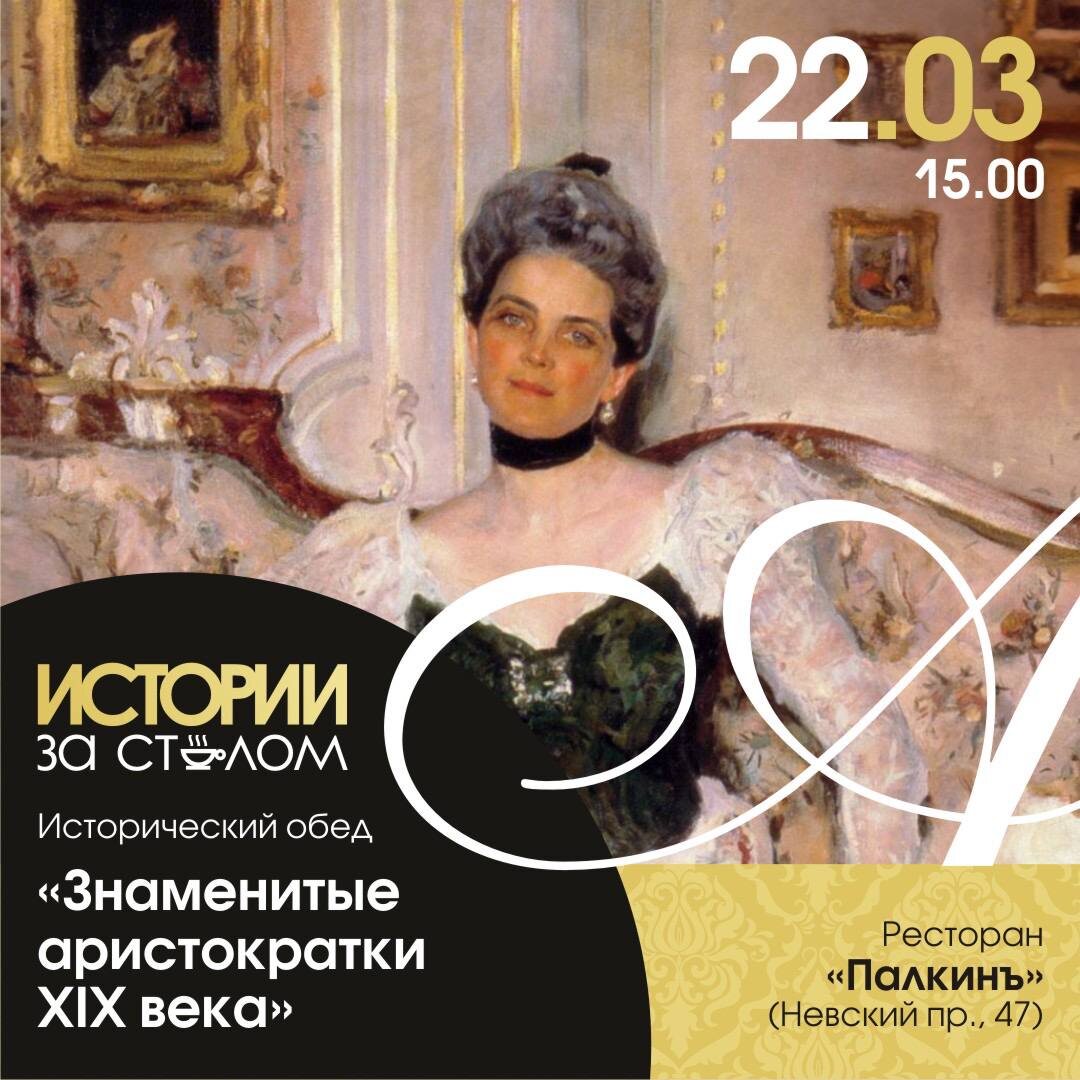 👇 👒👗💍Исторический обед "Знаменитые аристократки XIX века" 22 марта в 15.00 🧭Ресторан «Палкинъ» (Невский пр., 47) Лектор — историк Татьяна Цветкова. ✍️Екатерина Багратион, Авдотья Голицына (принцесса ночи), Зинаида Ивановна Юсупова, Наталья Голицына (пиковая дама), Зинаида Николаевна Юсупова покоряли сердца не только внешними данными, но ещё умом, воспитанием и манерами. Но ни одна из них не хотела быть только при муже. Независимый характер, воля, а порой отчаянное положение, позволяли нашим героиням найти выход, который часто не совпадал с общепринятыми ценностями в обществе, но давал возможность переломить свою судьбу. В меню представлены блюда Петербургской кухни, олицетворяющие собой страсть, любовь, и надежду. Каждое блюдо имеет свою историю, которую узнаете и вы, посетив наш ужин: 1⃣Фриволите с креветочным муссом; 2⃣Суп «Багратион». Слоёные пирожки; 3⃣Телятина Марешаль; 4⃣Ананасное парфе; 5⃣Бокал игристого вина; 6⃣Чай/кофе на выбор. 📩Стоимость — 6490 рублей на человек