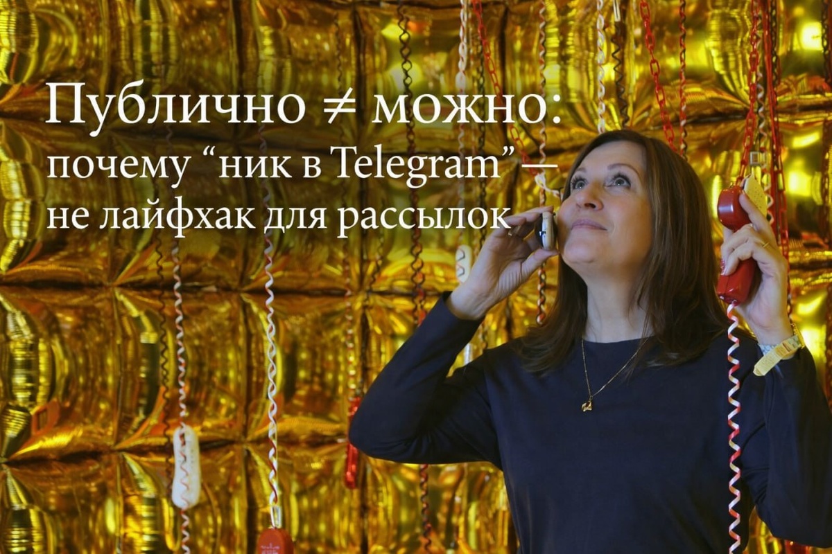 провальный запуск. Слушаю разбор воронок — всё бодро: цифры, “кругляшки”, “прогрев”, и тут звучит фраза из серии «ну это же очевидно»: «Ник в Telegram — не персональные данные. Если у человека открыт телефон — это тоже не персональные данные. Значит, можно смело писать в личку по базе, и всё будет законно». И вот тут у меня автоматически включился режим: «Стоп. Вы серьёзно?» Потому что это подают как смелость и хитрость, а по факту это часто выглядит как риск, завернутый в красивую упаковку “лайфхака”. ________________________________________ 🤔 Публичность — это не “можно всё” То, что человек где-то виден, не делает его контакт бесплатным ресурсом для ваших рассылок, даже если вам очень хочется дотянуться до “своих”, которые потерялись в шуме. Есть огромная разница между: — «я увидела ник в чате и пошла дальше» и — «я выгрузила ники/айди, занесла в табличку или CRM, разложила по сегментам, передала помощнику, запустила цепочку и пошла в личку с кругляшами и с кнопками “Хочу в игр