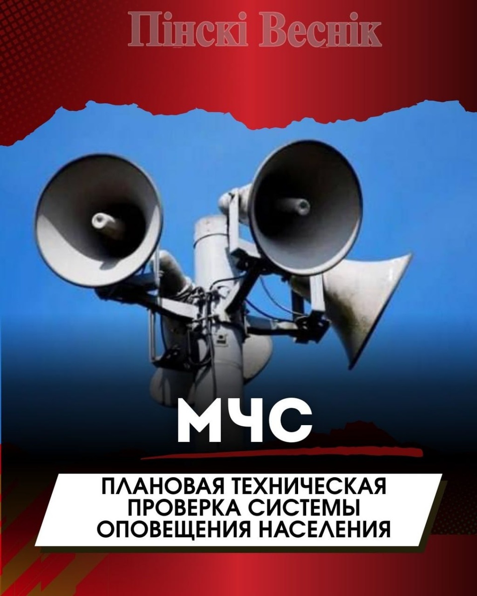 ⏩В ходе проверки будут включаться электросирены. ✔️Просим граждан сохранять спокойствие, никаких действий не требуется. @Пинский Вестник 📱Ютуб 📱ВК 📱ИНСТАГРАМ 📱ОК 📱ФЕЙСБУК 📱ТИК ТОК Прислать новость