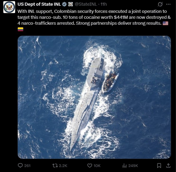 SUBMARINE with 10 TONS of cocaine worth $441M was destroyed by INL and Colombian sec forces