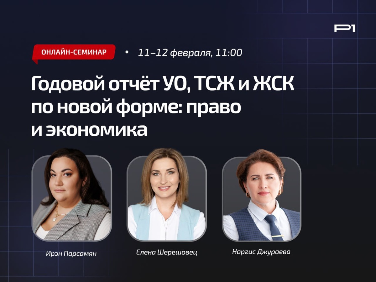 11 февраля в 11:00 начинаем онлайн-семинар «Годовой отчёт УО, ТСЖ и ЖСК по новой форме: право и экономика» с Ирэн Парсамян, Еленой Шерешовец и Наргис Джураевой. ➡️ В потоке уже более ста участников – и это без учёта членов Ассоциации «Р1», для которых участие бесплатное. ❎ Почему мы закрываем набор? Формат вебинара – двухдневный интенсив. Это не лекция, а разбор темы с живыми ответами экспертов на вопросы участников. Время ограничено, поэтому мы фиксируем количество мест заранее, чтобы каждый получил максимум пользы. ❗️С 2026 года годовой отчёт – зона повышенных рисков. Ошибка в подготовке легко превращается в цепочку: вопросы собственников → жалоба → проверка → предписание → перерасчёты и суды. ✅ Разберитесь в логике новой формы заранее. Не рискуйте репутацией своей организации. 📎 Забрать последние места на интенсиве #Ассоциация_Р1