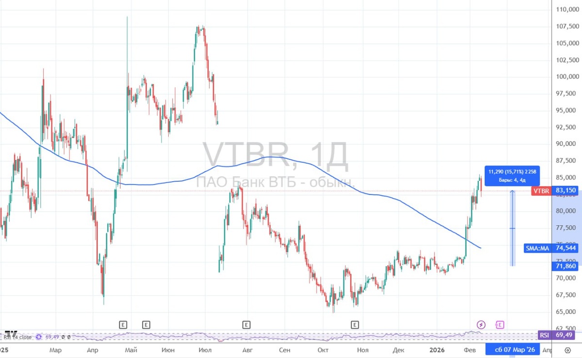 Акции ВТБ подхватили эстафету в ралли и выросли с уровней 70-72 до 83+ рублей (~ на 15%). Что это: спекулятивный разгон или фундаментальная переоценка? Суть обновленного кейса ВТБ я подробно описывал в закрытом канале . Если кратко, то идея держится на дивидендных ожиданиях. Оправдаются они или нет - другой вопрос. Сегодня я обрисую вам наиболее реалистичный сценарий. 📢 Начнем мы со слов главы ВТБ Андрея Костина: «У нас в этом году, в 2025 году, прибыль составила 500 млрд рублей, а в 2026 г. - 600 (млрд рублей) планируем или, может, даже 650 (млрд рублей). Я думаю, что у нас будут возможности для наращивания капитала и выплаты дивидендов. Наша, в общем, стратегия - это, конечно, ежегодная выплата дивидендов.» ✔️ Костин подтвердил выполнение цели по прибыли за 25 год и поставил планку на 26. Если все сложится (как в рекламном слогане ВТБ😁), то прибыль вырастет на 20-30%! Второй важный момент - какую долю от прибыли заплатит банк? На этот счет тоже есть комментарий Костина: «Высчитаем,