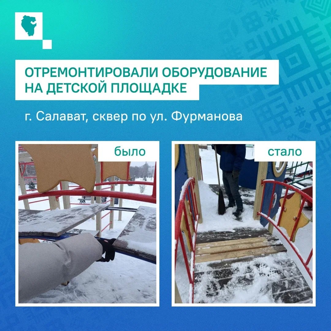 😀😃😄😁 В Салавате, в сквере по улице Фурманова, отремонтировали оборудование на детской площадке. О том, что в городке сломан мостик, местная жительница сообщила в соцсетях. Комментарий зафиксировала информсистема ЦУР Башкортостана «Инцидент-менеджмент» 8 февраля 2026 года. Администрация города Салавата взяла обращение в работу. Сообщение передали в управление городского хозяйства. 9 февраля работники обслуживающей организации устранили поломку. 👍 ЦУР Башкортостана