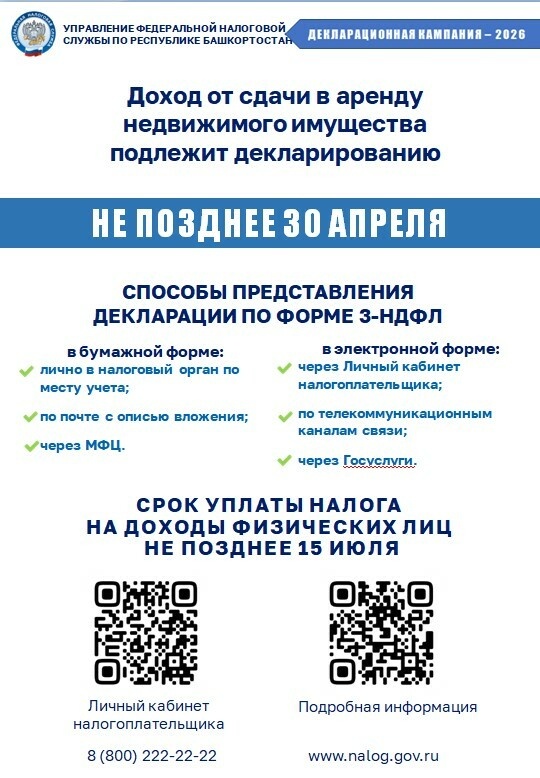 Налог на доходы физических лиц, как правило, уплачивается налоговыми агентами – он удерживается с заработной платы, но в ряде случаев граждане обязаны самостоятельно рассчитать сумму налога и представить в налоговый орган декларацию по налогу на доходы физических лиц по форме 3-НДФЛ. Об этом напоминает УФНС России по Республике Башкортостан. Представить декларацию обязаны те, кто получил: - доход от продажи недвижимого имущества, находившегося в собственности менее минимального предельного срока владения; - недвижимое имущество, транспортные средства, акции, доли, паи в дар от физических лиц, не являющихся близкими родственниками; - вознаграждения от физических лиц и организаций, не являющихся налоговыми агентами, на основе заключенных договоров и договоров гражданско-правового характера; - выигрыши от операторов лотерей, распространителей, организаторов азартных игр, проводимых в букмекерской конторе и тотализаторе – в сумме до 15 тысяч рублей, а также от организаторов азартных игр, н