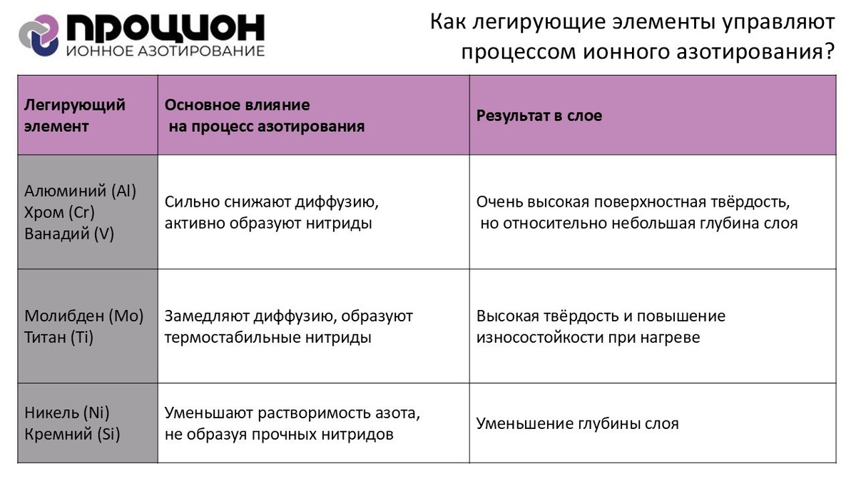 Результат ионного азотирования зависит не только от параметров режима, но и от состава стали