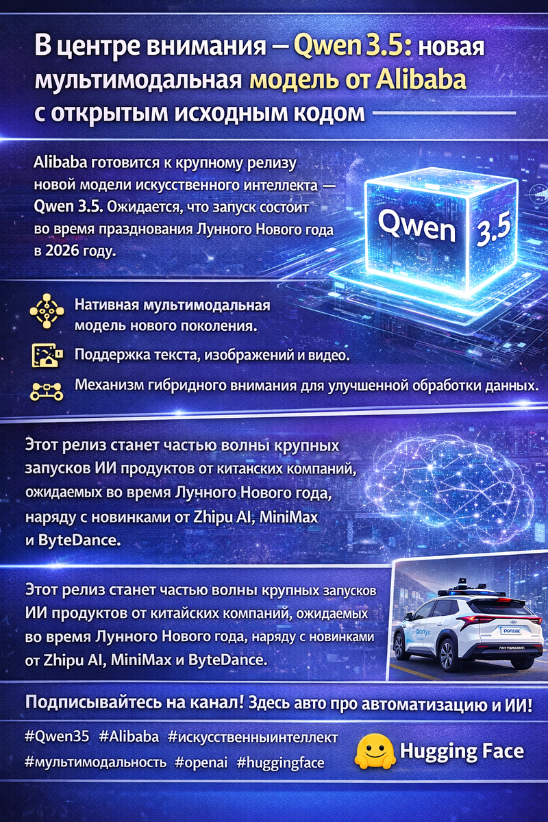 Alibaba готовится к выпуску своей новой мультимодальной модели с открытым исходным кодом — Qwen 3.5, которая станет одной из ключевых новинок в области искусственного интеллекта в 2026 году. Ожидается, что ее дебют приурочен к празднованию Лунного Нового года, что стало важным событием в индустрии.