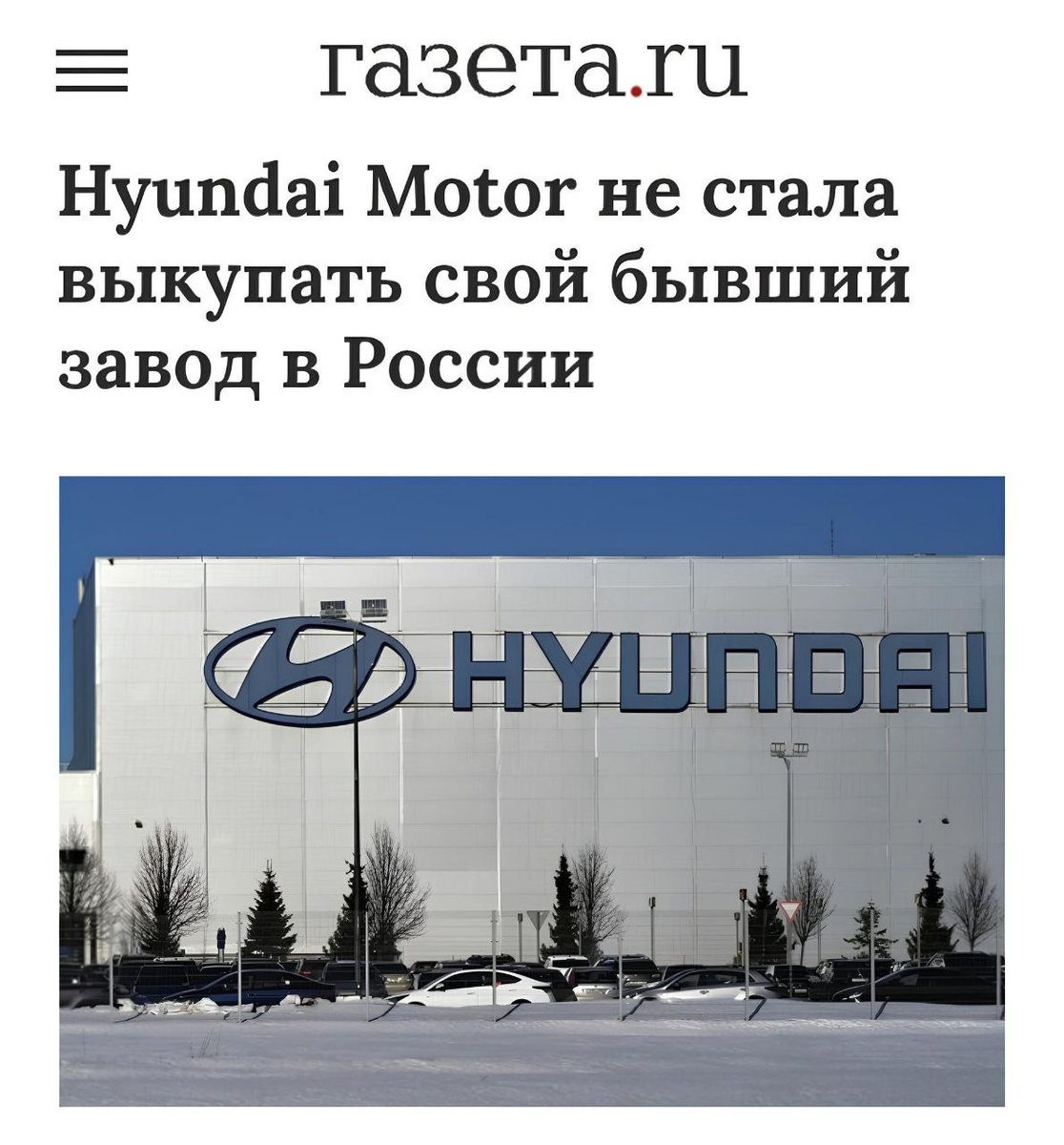 ! корейцы не воспользовалась правом выкупа своего бывшего автозавода в Питере. Hyundai Motor вела переговоры с российской стороной, однако к крайнему сроку ( 31 января) отказалась от выкупа всоего завода. По данным изданий, одним из решающих факторов стало активное распространение на российском рынке китайских машин. Вот так вот КарНет