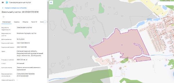 Название: Земельный участок с кадастровым номером 39:01:041701:619, расположенный по адресу: Калининградская область, Багратионовский район