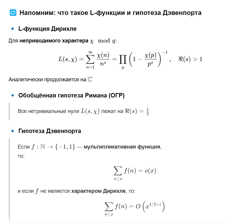 а потому что иначе — нарушается структура чисел — что эквивалентно ОГР для широкого класса функций 🔹 То есть: Гипотеза Дэвенпорта —