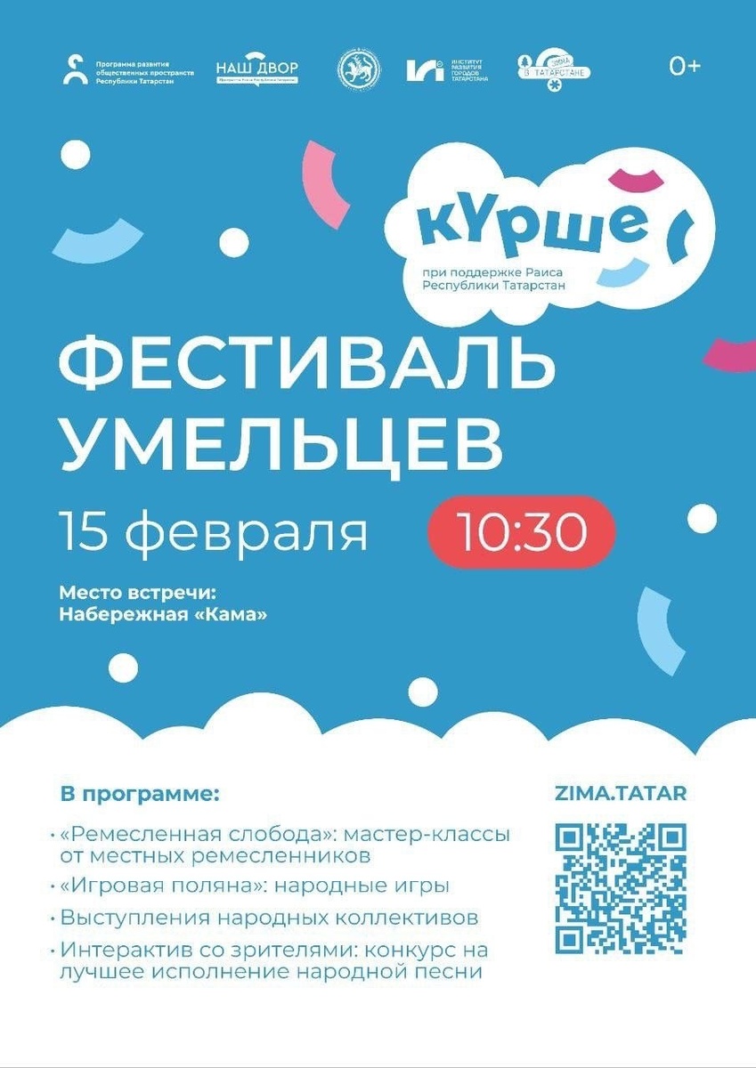 🎪. Это уже третье мероприятие в рамках проекта «Вместе теплее», получившего грантовую поддержку республиканского зимнего фестиваля «Курше». Организаторы подготовили для гостей насыщенную программу: на фестивале будут работать аллея мастеров с изделиями народных умельцев 🧵, активная игровая поляна 🎯, каток с возможностью катания на коньках ⛸, а также пройдут концерт с любимыми песнями и танцами и выступление местных фигуристов. Создать по-настоящему зимнее и тёплое настроение помогут горячий чай и сладости ☕🍰. Начало мероприятия запланировано на 10:30 ⏰.