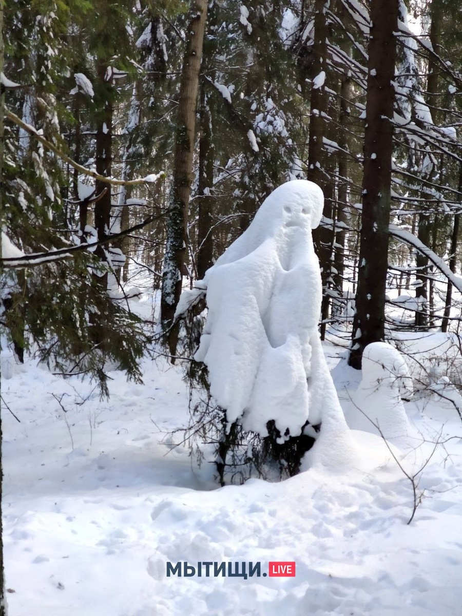 👻 В Пироговском лесопарке на дереве заметили причудливо налипший снег, который сложился в фигуру, напоминающую привидение в накинутом одеяле. В очертаниях читается лицо с довольно пугающим выражением, будто персонаж из старых мультфильмов. ❤️ @mytischi_live | прислать новость 📲 Мы в MAX