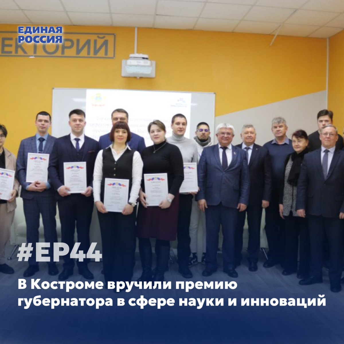 💬 «В преддверии Дня российской науки глава государства Владимир Владимирович Путин вручил президентские премии молодым ученым. Обращаясь к ним, он сказал – вы выбрали интересное, достойное и захватывающее дело – служение прогрессу, и от ваших великих открытий во многом зависит будущее нашей страны, ее развитие и процветание. Это напутствие Президента относится и к вам – молодым ученым Костромской области, потому что уже сегодня вы делаете серьезный вклад в развитие нашего края. И ценно, что это не просто теоретические изыскания, а это практические технологии, нужные и полезные, которые позволяют нам развиваться. Как руководитель регионального отделения Единой России, хочу сказать, что поддержка молодых и талантливых студентов, молодых ученых является одним из приоритетных направлений работы партии. Сейчас идет формирование новой народной программы на следующую пятилетку. И я приглашаю к сотрудничеству вас, молодых ученых, важно, чтобы ваш голос был услышан. Поздравляю с заслуженными премиями, с определенной вершиной, которую вы взяли. Не останавливайтесь на достигнутом. Желаю, чтобы ваш труд был результативным и полезным людям», – сказал Алексей Анохин.
