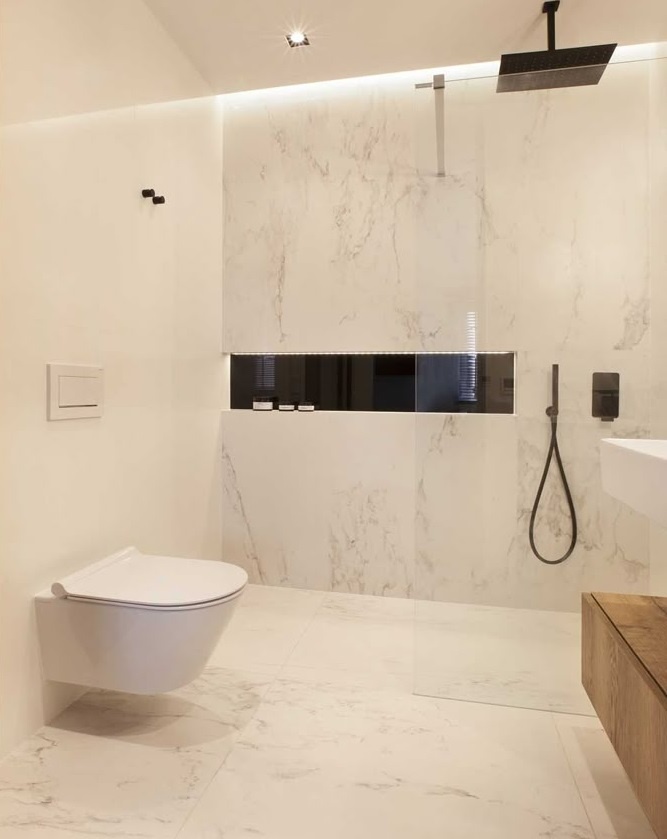 · Утопленные панели управления для душа и ванны. Сенсорные панели скрыты в стене и активируются легким прикосновением или голосом. Видимыми остаются только изящные поворотные элементы или магнитные накладки.