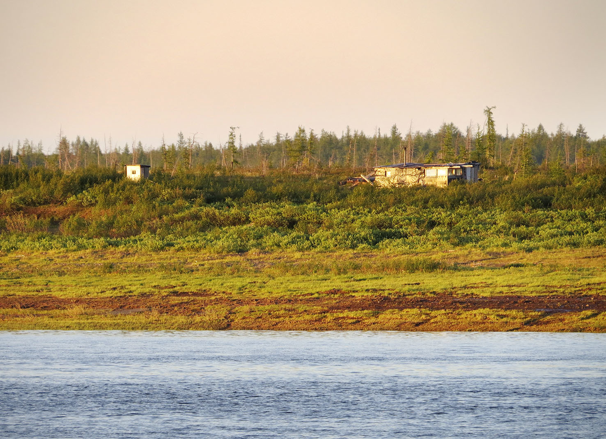 В низовьях Енисей впечатляет мощью и масштабом, но не красотой берегов. Чтобы хоть за что-то зацепился глаз, вглядываться в эти берега с борта пассажирского теплохода (в моём случае "Валерий Чкалов") приходится порой часами: Среди ветхих, покосившихся зимовий попался лагерь геологов с французскими машинами "Номад 65А" от компании "Серсель", которые мгновенно узнаются по наклонным кабинам и треугольными гусеницам. Это не вездеходы, а мобильное оборудование - сейсмические вибраторы, с помощью которых ищут нефть. Первый раз я видел такие в 2015 году под Антипаютой, а теперь их пытается импортозаместить "Камаз". В первых числах июля на заполярных берегах белели снежники: А в первых числах августа проступили из опустившейся воды бескрайние пески островов и пляжей: Да и на берег, как на Белом море, понемногу выползают барханы: В августе я шёл на юг под полной Луной: В июле в эти же часы светило Солнце: Ну а целая батарея плавкранов напоминает, что скоро мы сойдём на берег - вдали проступает