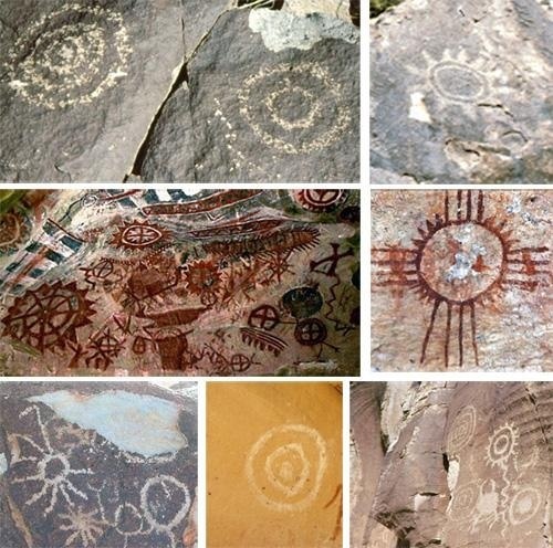 Самый древний символ, известный во всех культурах (имеющих общий корень) - это солнце с лучами или колесо со спицами, что с точки зрения